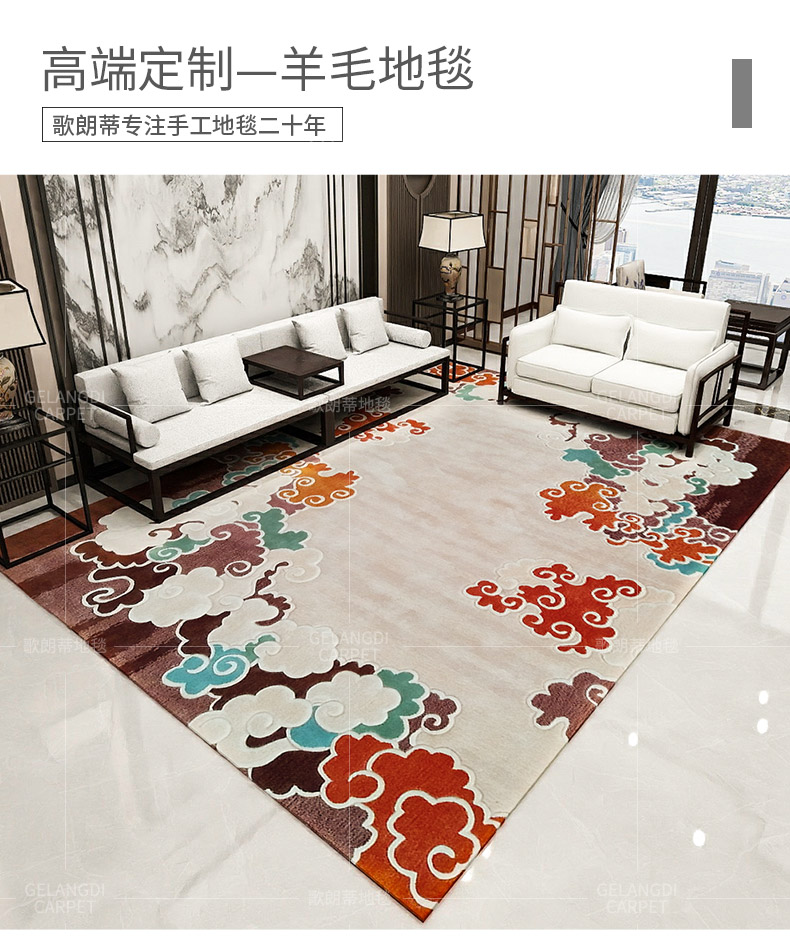歌朗蒂(GelangDi)地毯新西兰羊毛手工地毯新中式中国风祥云地毯现代客厅茶几沙发毯卧室床边满铺毯 定制:新西兰羊毛【每平米】