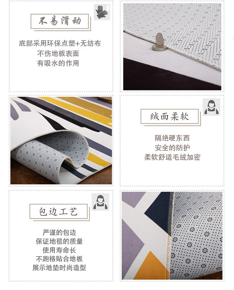 雪之恋地毯北欧简约现代客厅茶几地毯欧式沙发卧室床边玄关毯可水洗可定制 JY-001 80*120CM【图片 价格 品牌 报价】-