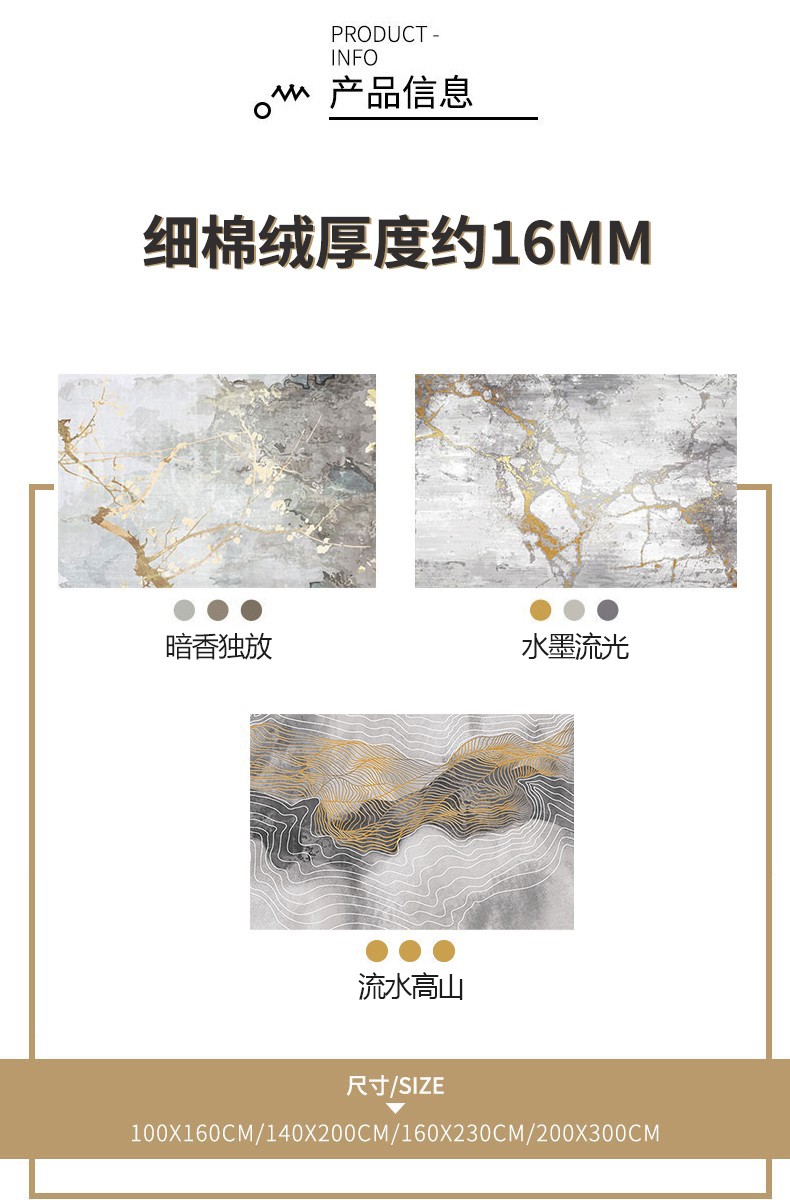 现代新中式客厅茶几地毯中国风简约山水墨画灰色画图案古典复古风格餐厅茶室书房卧室床前边下地毯 YS-33 240CMx340CM