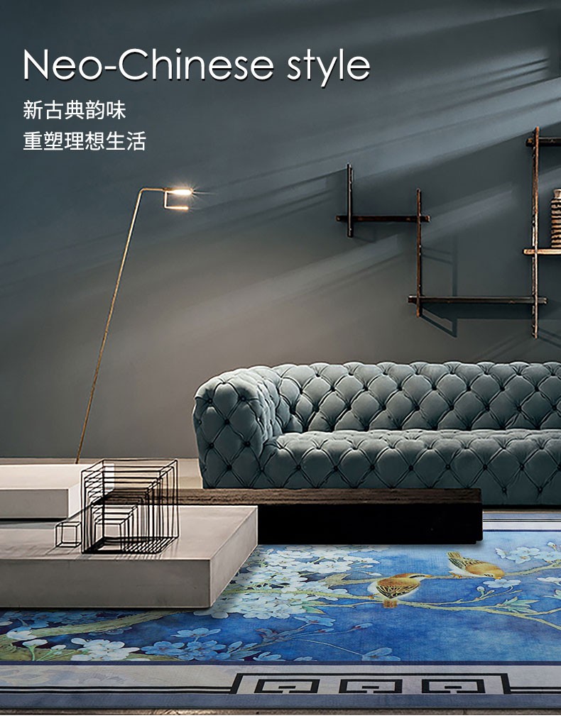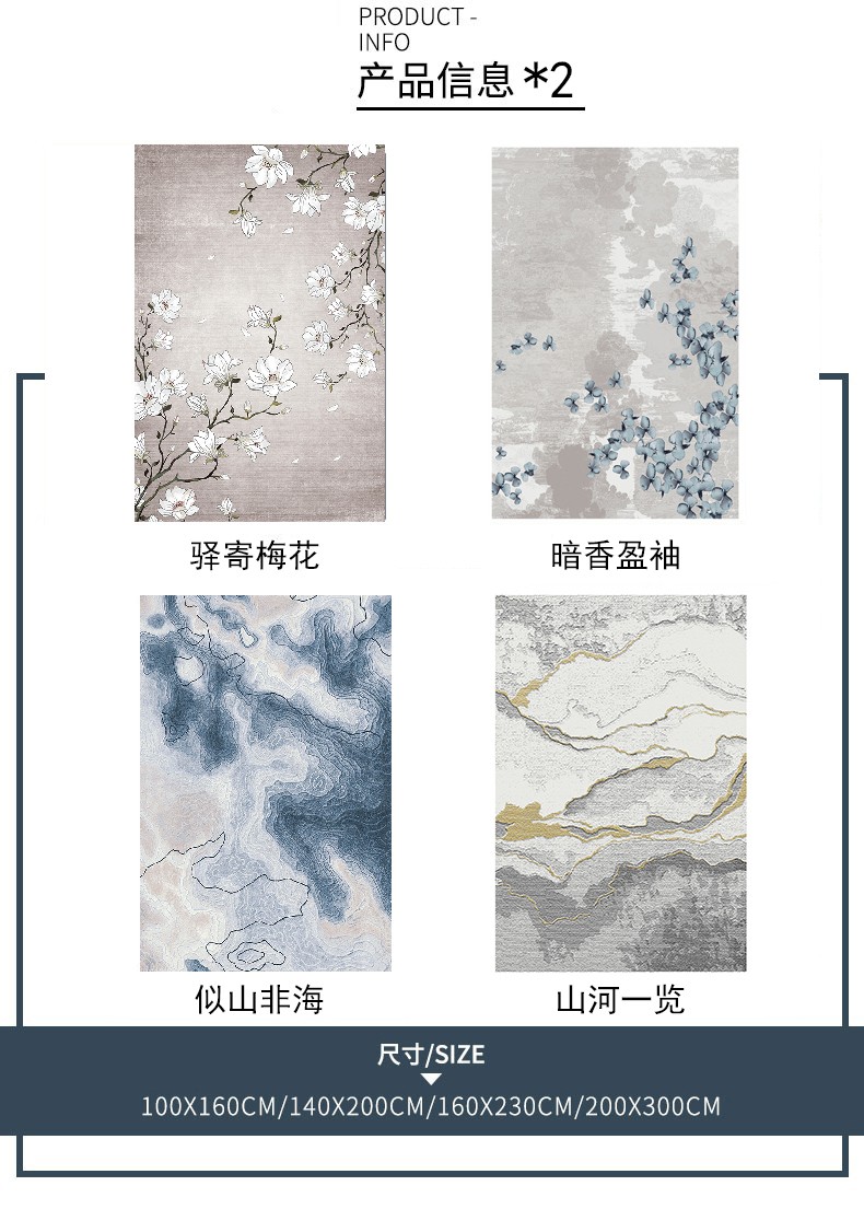 天辰 现代新中式地毯客厅茶几地毯可定制 卧室满铺床边毯 中国风中式古典花鸟山水房间沙发地毯 水墨流光 100*160cm【图片 价格 品牌 报价】-