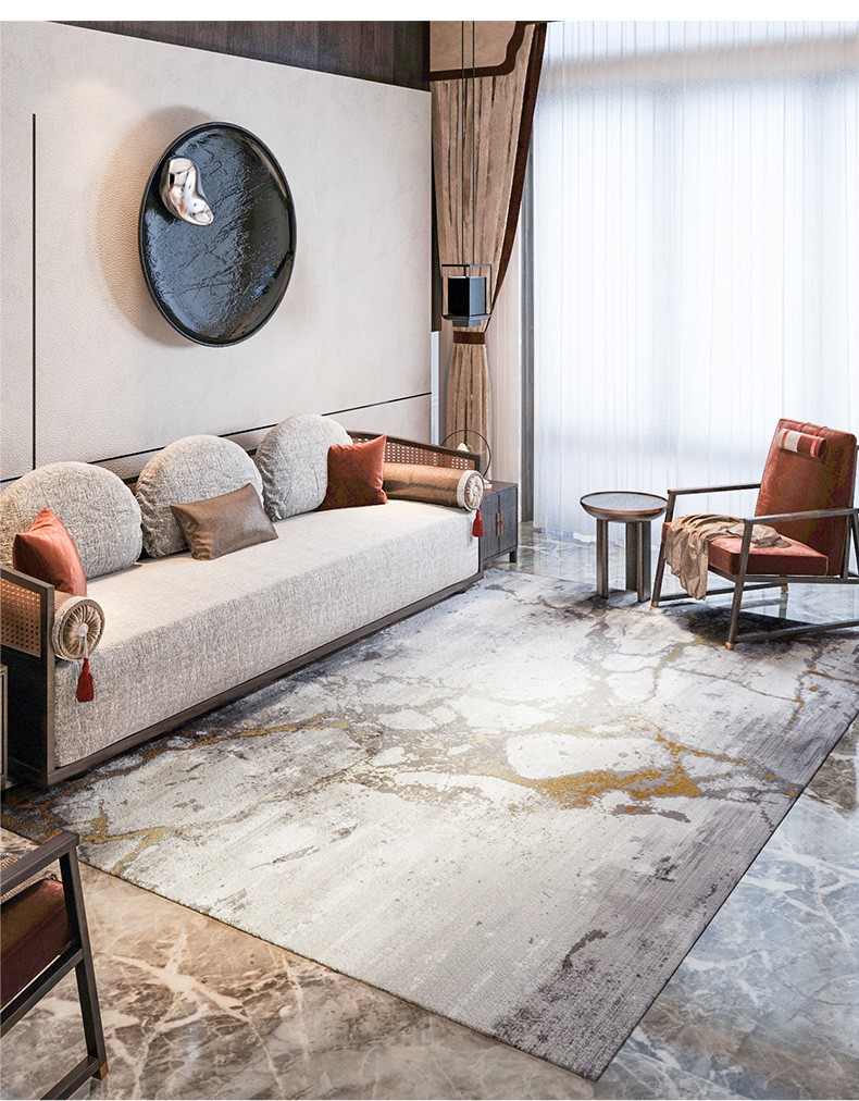 天辰 现代新中式地毯客厅茶几地毯可定制 卧室满铺床边毯 中国风中式古典花鸟山水房间沙发地毯 水墨流光 100*160cm