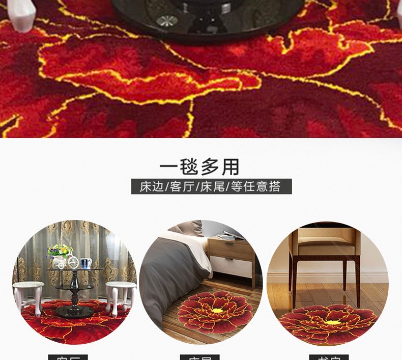 大眼猴 简约地毯客厅沙发茶几卧室毯牡丹花婚房新居入屋喜庆地毯卧室地毯客厅装饰地毯 红色A款 直径50CM【图片 价格 品牌 报价】-