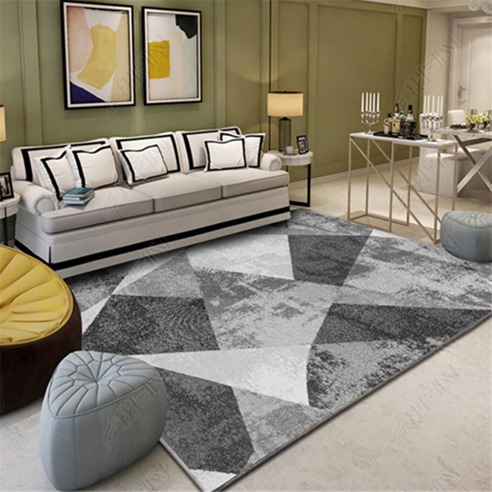 圣艾尔地毯几何简约时尚图案地毯客厅茶几地毯卧室床边长方形地毯餐桌地毯可水洗 吉祥圈图案 平面款140*200cm中型沙发前用【图片 价格 品牌 报价】-