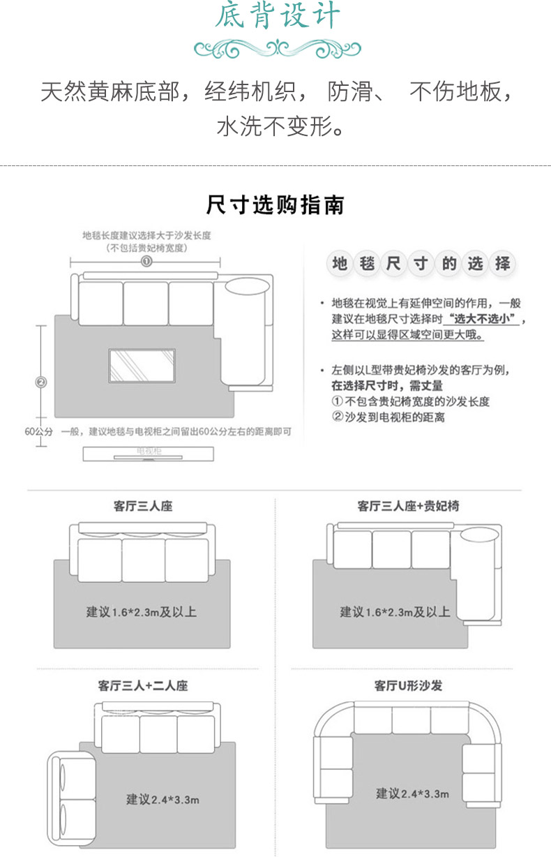 佐弗迪 北欧轻奢风地毯家用客厅沙发毯茶几垫欧式玄关房间床前毯卧室床边毯 ATLY-501 1330MM×1900MM